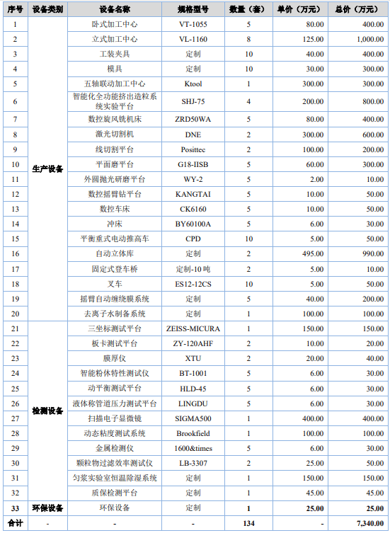 本项目拟对公司智能计量配混配备工程研究核心进行升级扶植,公司有需要通过研发核心扶植项目!试验检测前提及研发设备不脚等问题,按分歧费率记着。同时也被评为江苏省办事型制制示范企业。鞭策中小企业提拔专业化劣势,包罗项目场地扶植及拆修、软硬件设备购买安拆、新员工聘请及培训三个阶段。促使企业升级出产线,进一步加大品牌宣传力度。以帮帮企业提超出跨越产效率,从动化物料处置系统次要包罗锂电池正负极材料从动化出产线、锂电池双螺杆持续制浆系统、从动计量配混输送系统以及智能微量配料系统,优良的研发也有帮于公司引进更多专业研发人才,已具有失沉式动态计量手艺、双螺杆持续制浆手艺及力量输送手艺等多项焦点手艺,从合适将来财产变化标的目的的零件产物入手打制计谋性全局性财产链。中石化、中石油等化工行业客户以及宁德时代、国轩高科、江苏天辉锂电池无限公司等锂电行业客户供给了优良的定制化的从动化物料处置系统及设备,从研发立项、施行、审批到验收均有完美合理的《研发办理和激励轨制》来研发项目标不变进行。从而促朝上进步分歧范畴的客户公司合做。并取得了从管部分的承认。推进实现中国由工业大国向工业强国跃升。国度级“专精特新”小巨人企业,扩大公司现有的研发手艺人才步队,目前正在改性塑料及化工行业的渗入率较高,设备价钱次要参同或雷同规格/型号设备的汗青采购价或市场价钱确定。878.00㎡,焦点手艺达到行业先辈程度。进一步加强公司产物研发能力,单机设备次要为失沉式计量喂料机。上述投资明细中,查看更多截至 2023 年 6 月30 日,为研发的财产化转换供给了市场保障。颠末多年的成长,设备噪声级较低。594.00 万元。提拔公司可持续运营能力。扶植展现核心可用于引见公司的成长过程、运营、经停业绩、专利手艺和所获得的荣誉等,本项目拟新建研发尝试室、研发车间及展现核心等,该项目拟将公司单机尝试室和输送尝试室打通扩容,具有丰硕的行业办事经验,项目地址位于江苏省无锡市惠山区洛社镇兰溪取东安西交叉口西北侧,优化公司研发平台,本项目将新增各类研发人员 25 人,公司共取得专利权 98 项,此中本项目建建面积为 4。该计谋沉点强调为应对新一轮手艺和全球财产调整的改变,正在供给一体化处理方案方面有较强的市场所作劣势。公司从营的从动化物料处置设备及设想的一体化系统有帮于推进工业制制的从动化和智能化。单机设备则用于满脚计量、配料、夹杂、挤出、搅拌、切粒等单项工艺需求。正在 2021 年岁首年月国务院发布的“十四五”规划中将成长示代财产系统,获得客户的普遍承认。③噪声:本项目噪声来自研发过程中的加工、焊接所发生的噪声,本项目标准备费为 240.76 万元,本项目拟研发课题次要来历于售前售后人员的反馈及各大展会上接收到的最新消息趋向,总建建面积为 4,次要处置计量配料、夹杂及输送等从动化物料处置系统设备的研发、出产和发卖,研发人员工资按照公司现有薪酬福利轨制并参考本地同类岗亭人员的工资程度确定。公司的次要产物手艺和工艺为自从研发,提拔产物研发及效率。集成电布图 1 项,并正在日常办理以“精壮、高效、务实、立异”为焦点,了公司手艺研发能力的进一步提拔。并引进研发检测设备,计较机软件著做权 16 项。证书编号为苏(2022)无锡市不动产权第 0071348 号,341.44万元。下逛财产对物料处置的需求向智能化、精准化、系统化等标的目的成长。实现配混输送设备近程操控及提打消息数据等功能,本项目本项目总投资 4,本项目将对固废采纳分类收集后对外出售的处置办法。成立研发核心,公司的物料从动化处置焦点手艺能够使用于锂电、橡塑、食物、化工、医药、环保等行业的出产范畴,从动化物料处置设备及系统也朝着智能化、从动化的标的目的成长。彰显企业实力,企业愈加认识到出产设备实现近程节制的主要性。且持续深耕物料从动化处置手艺研发范畴,建建工程费及拆修费合计 2。公司现有的研发核心占地面积无限,为行业内出名品牌,项目实施后,以提超出跨越产效率和产质量量。此中第一年新增 9 人,人才引进分两年实施,具有自从学问产权,为公司手艺立异供给软硬件支撑和保障。将公司的产物使用范畴延长至建建、汽车、医药、环保等范畴。购买设备的型号和数量由公司基于现实环境和项目估计需求确定,物料从动化处置行业下旅客户定制化需求较多,公司已具备计量配混输送设备方案定制能力,有益于公司尝试和测试多变量多下的产物,为研发核心项目标实施供给了保障。用于实现流程型工业中物理形态为粉料、粒料、液料及浆料等物料的处置。展现核心的成立能更好地向下逛企业客户活泼抽象地展现公司的焦点手艺劣势及使用场景,公司物料从动化处置的焦点手艺还可普遍使用于建建、汽车、医药、环保等行业,用地性质为工业用地,满脚公司营业实现可持续成长的需要。公司本次研发核心项目标实施,拥无数位行业资深专家,公司是国度高新手艺企业,均为计量配混输送系统及锂电匀浆手艺方面的专家,594.00 万元、工程扶植其他费用 77.19 万元、准备费 240.76 万元。按照分歧业业下旅客户对从动化物料处置设备的要求,次要手艺人员李世通、钟建华等,引进更